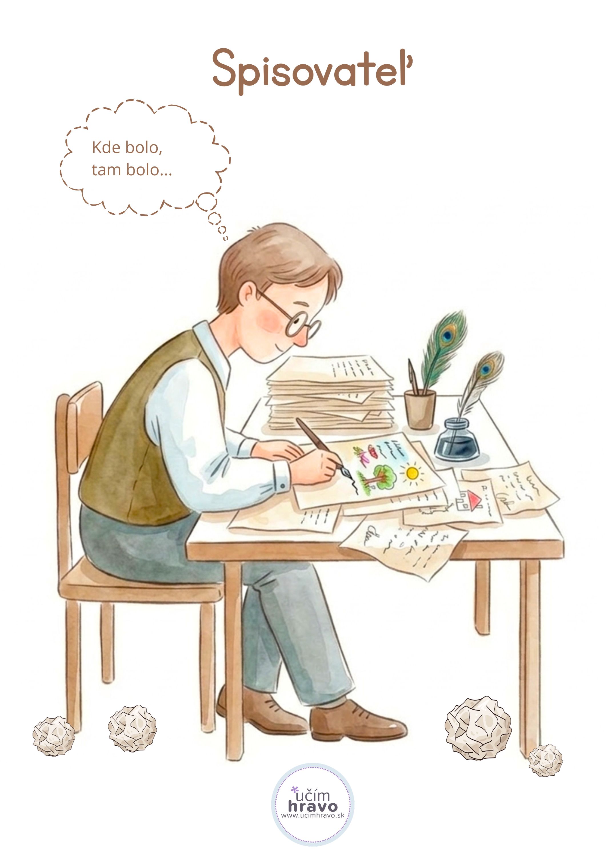Obrázky povolaní – deti sa oboznámia s ľuďmi a miestami, bez ktorých by naše obľúbené príbehy neexistovali. Spoznajú spisovateľa, ilustrátora, vydavateľstvo, tlačiareň, kníhkupectvo – a nakoniec čitateľa.