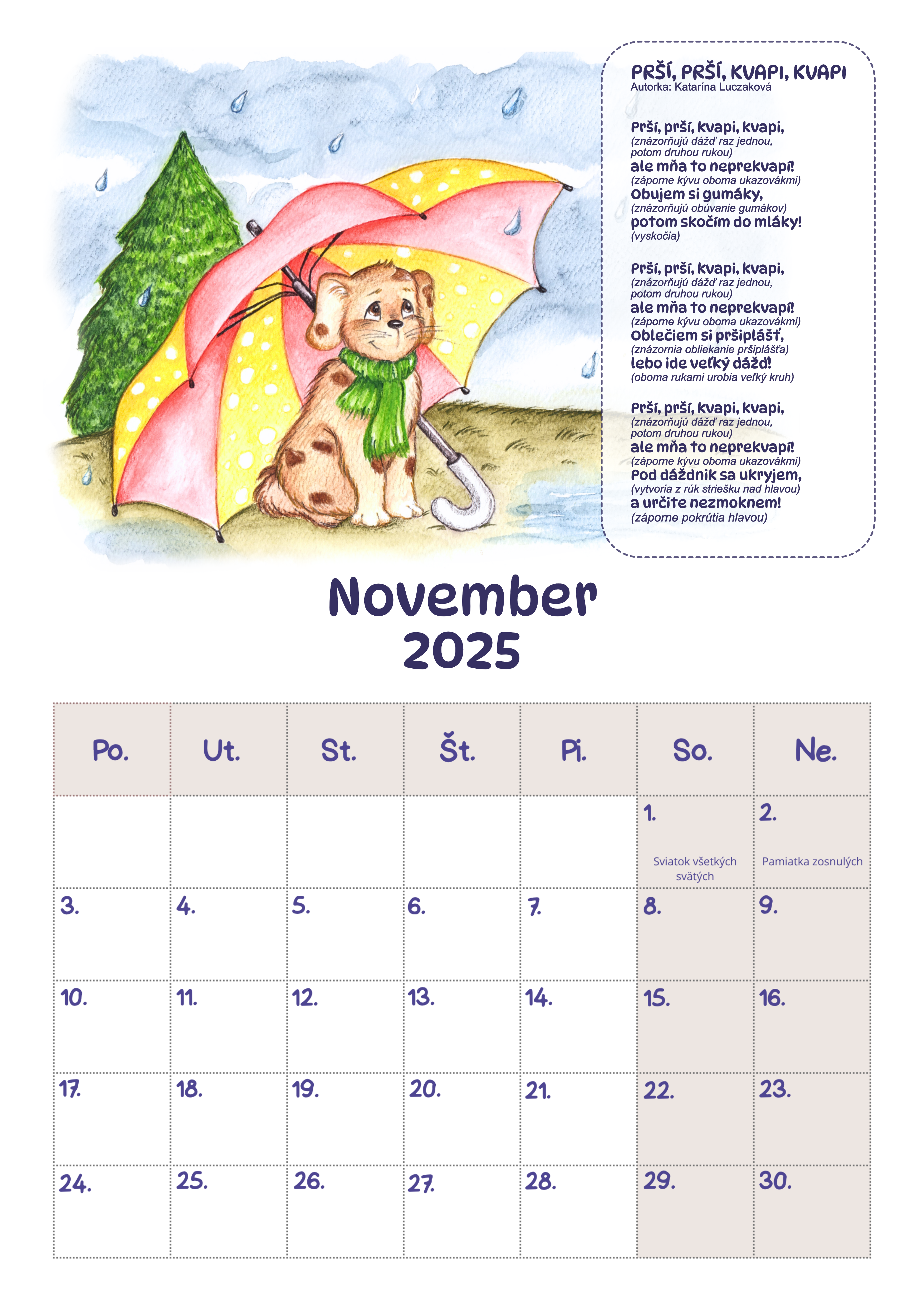 - a novembrový kalendár s riekankou pripravený na tlač.