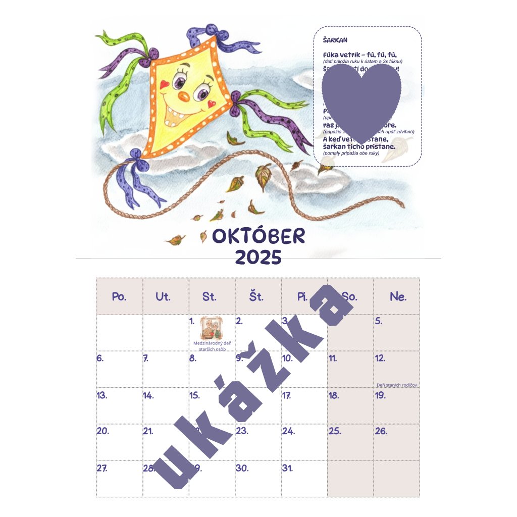 - získate darček – kalendár na mesiac OKTÓBER s pohybovou riekankou.
